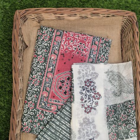 Ajrakh Inspired Cotton Kurti Pant Dupatta Set (Unstitched)